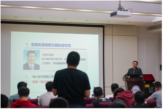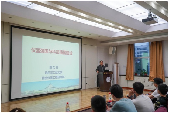2019年5月13日18:30,球盟会 尚学堂第1期在活动中心如期而至,特邀请谭久彬院士大家带来主题为“仪器强国与科技强国建设”的讲座。球盟会 党委副书记王芳、17级辅导员修文心参加活动。