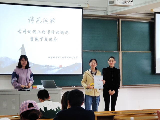 本次活动结束后,球盟会 研究生会对本次活动进行了总结,并于5月27日中午12点半在活动中心506举办了颁奖暨线下交流会。本次颁奖邀请了球盟会 党委副书记王芳和球盟会 研究生协理员王一婷为获奖者颁奖。颁奖环节结束后,到场的活动参与者还进行了积极地交流,并交换了作品。