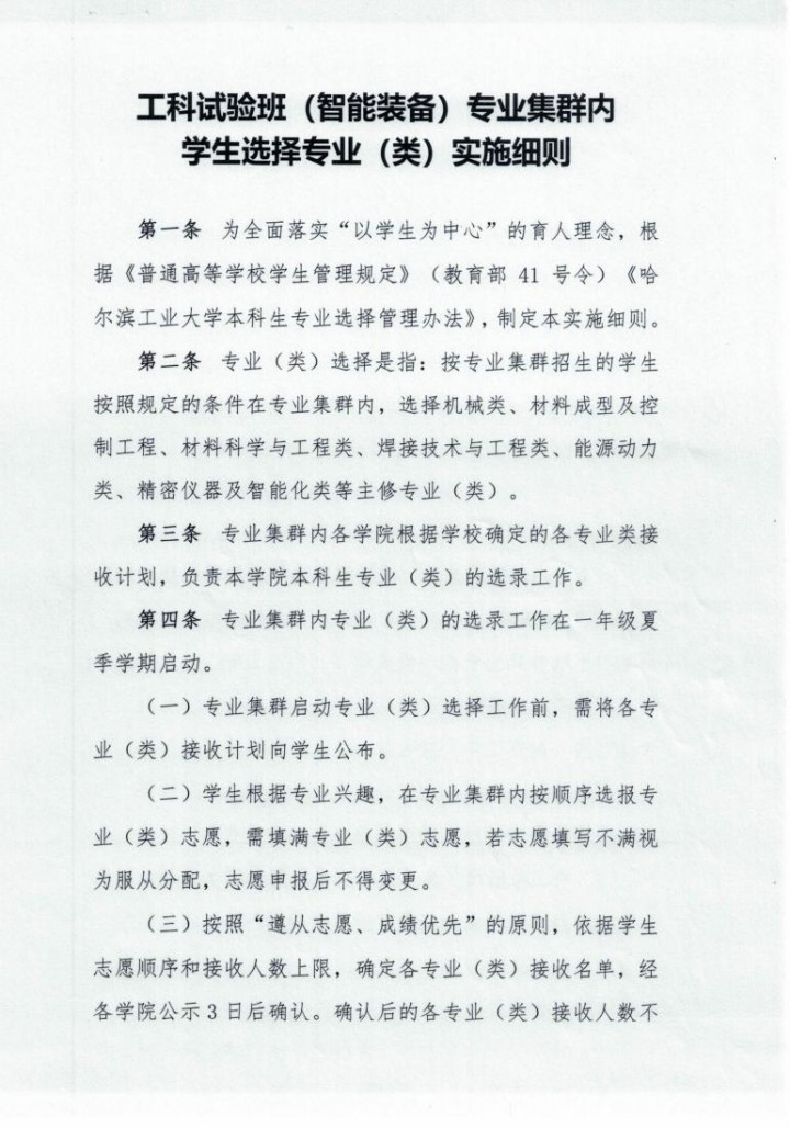 球盟会 工科试验班(智能装备)专业集群内学生选择专业(类)实施细则