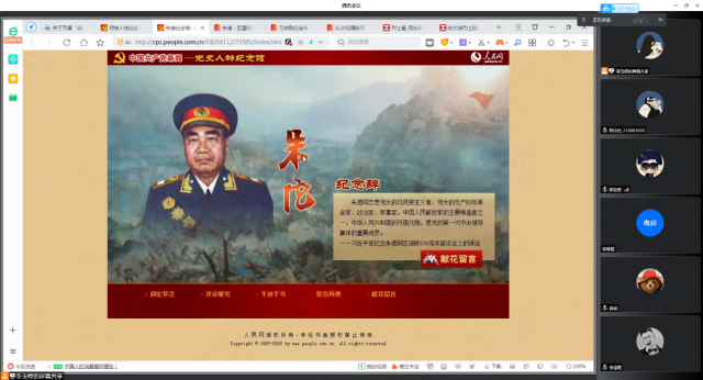 2001001团支部团支书徐诺带领支部成员一起进入线上党史人物纪念馆,通过学习光辉事迹来缅怀先烈精神。支部成员共同学习朱德元帅参加中共六届六中全会前后的统战工作,学习了他坚定的革命精神、求实的科学态度、崇高的道德品质、优良的思想作风。
