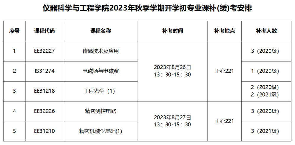 球盟会 2023年秋季学期开学初专业课补(缓)考时间为2023年8月26日——8月27日,具体安排详见下方图片。