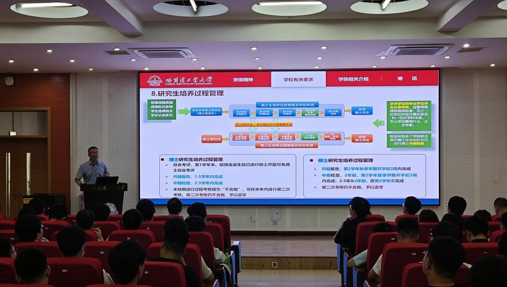 接着,副院长陆振刚教授从球盟会的历史沿革、机构组成、师资队伍、学术方向、人才培养、未来展望等多个方面细致介绍了球盟会当前的基本情况,使同学们对球盟会 有了更深刻的了解;随后,陆院长介绍了研究生培养过程中的相关要求,详细解读了学业年限要求、培养过程管理、培养计划、学位论文要求和毕业要求等具体内容,陆院长鼓励同学们锚定个人追求与国家事业的交汇点,通过自身的努力为强国建设、民族复兴作出新的更大贡献。