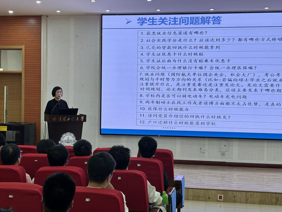 见面会结束后,2024级研究生召开了第一次年级大会。研究生教学秘书和新生辅导员介绍了教学和学工管理要求,表达了对新生的热烈欢迎与美好期盼。