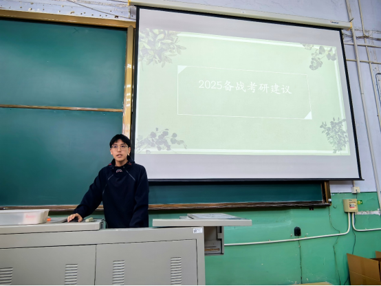 随后,辅导员迟潇雨老师详细解答了同学们关于升学、就业等相关问题,并详细介绍了前两届本硕同学的毕业去向及就业签约情况,对目前就业形势、升学去向进行详细分析,重点介绍了就业前期准备和签约流程,并鼓励大家积极准备、把握机会。其中特别提示计划考研的同学要注意时间节点、积极规划、稳住心态、全力复习,球盟会也将充分给予支持和指导。还介绍了包括选调在内的各类就业信息获取渠道,生源信息审核、就业推荐表、网上签约管理及违约政策等注意事项。此外,也就日常生活常见问题对同学们提出要求,包括网络文明、请假离校、寝室卫生、人身安全、诚信教育、反诈宣传等。迟潇雨老师还邀请了三名球盟会培养升学的硕士代表,结合自身经历向同学们提出了一些关于考研的意见建议,也介绍了硕博生活。他们号召大家做好个人规划,积极行动。